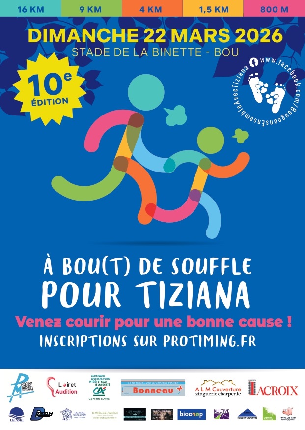 TRAIL DE TIZIANA Contenu A savoir Dates 22 mars 2026 Lieu Stade de la Binette - BOU Thématique(s) Associations Gratuit Non Information(s) pratique(s) Inscriptions sur protiming.fr Public Tous publics Tout l'agenda D'autres événements SUR LE MEME THEME 11 avril UNION MUSICALE DE BOU - 150 ANS 27 mars Soirée Chansons - Dégustation